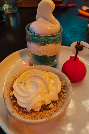 The menu offers a wide range of well-themed treats. From the Hunter's pie appetizers to the poison apple dessert everyone will be delighted by the fun theming and the taste.
